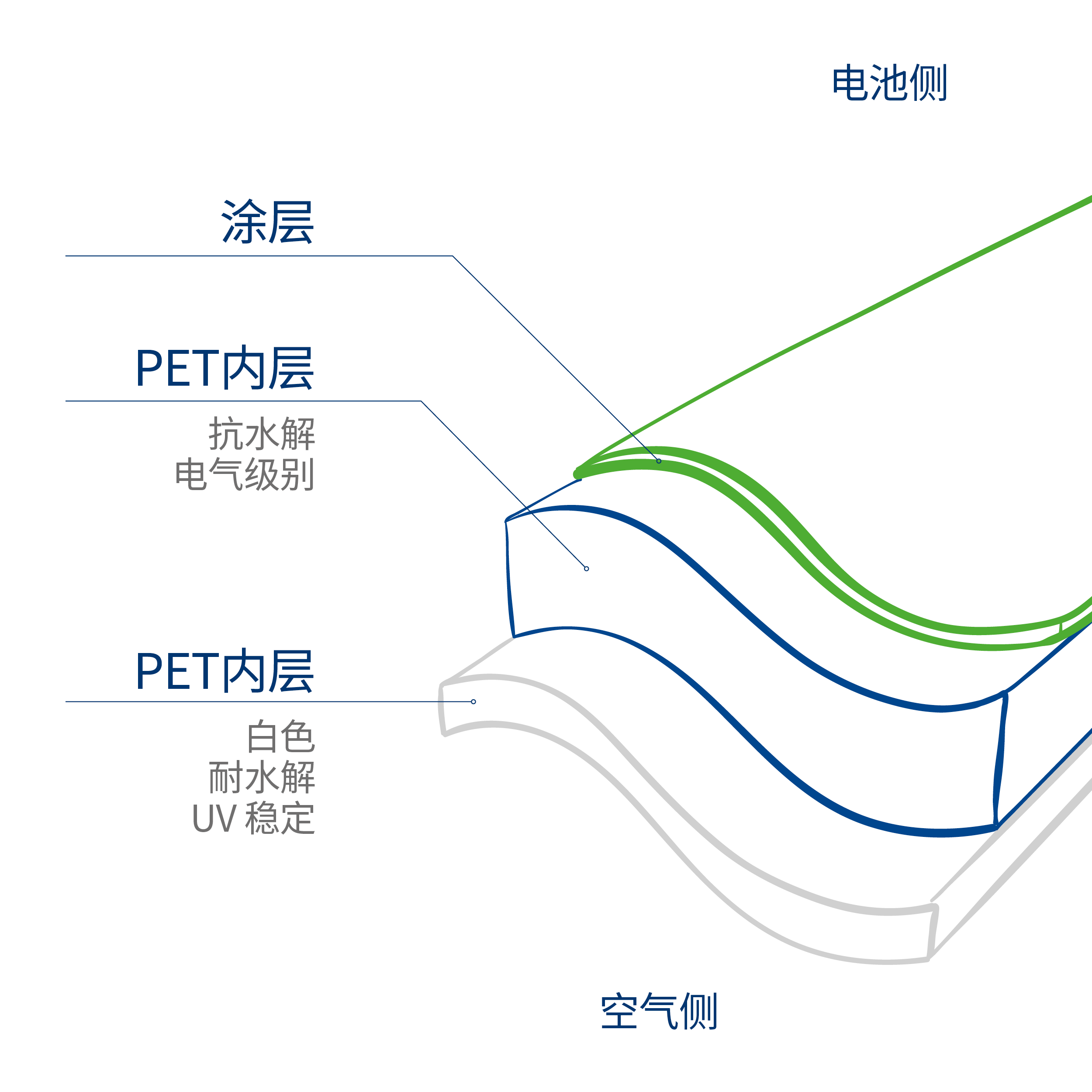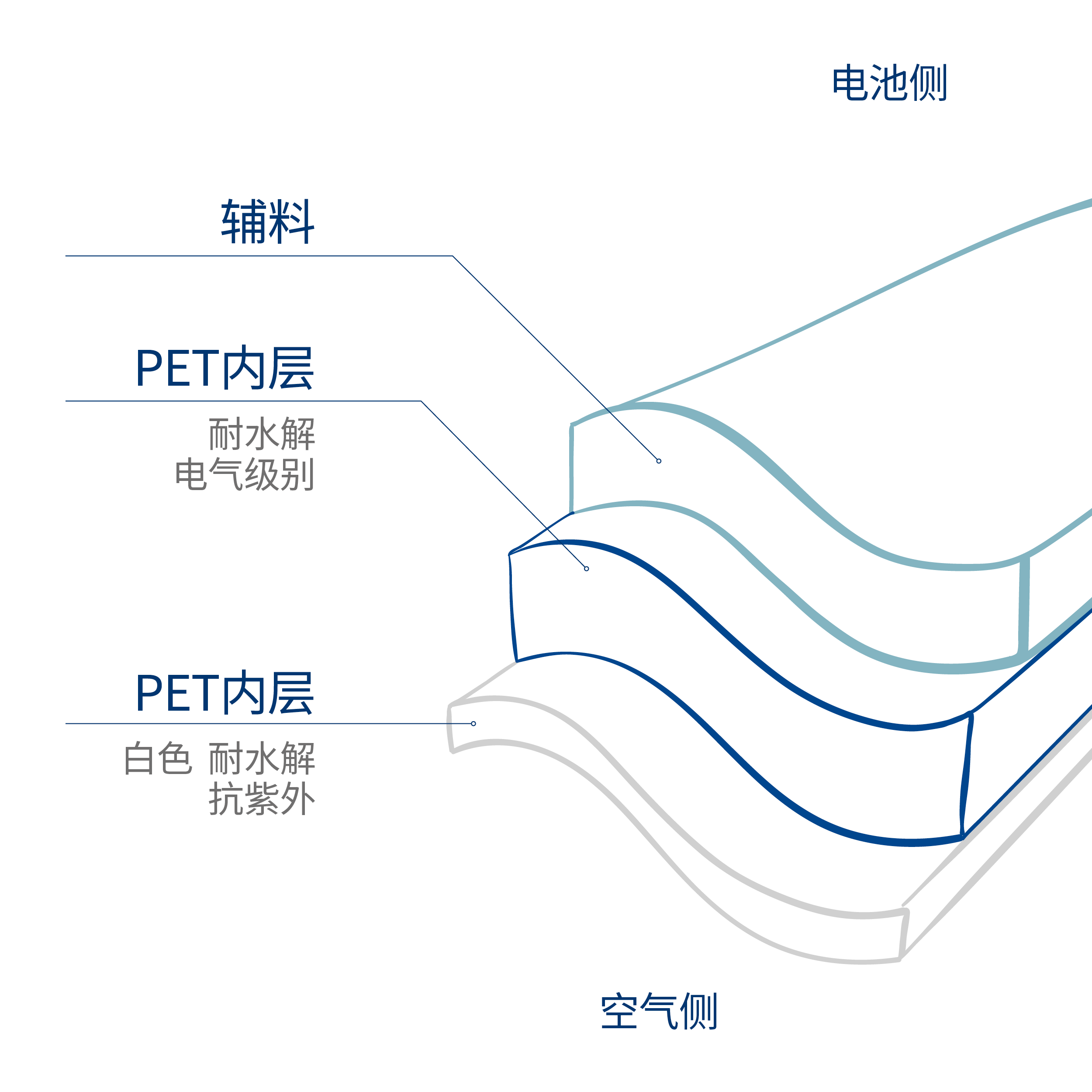 康维明最畅销的背板,15年来成功经市场验证。 该产品采用特殊的高级PET,能保证超过2500小时的湿热试验(DHT),72小时的PCT(HAST)老化试验超过400千瓦时/平方米的抗紫外线照射。 此外,dyMat PYE®系列产品能为各类封装材料提供高粘合强度,并且对沙子、盐雾、氨和化学溶剂腐蚀具有极好抗力。