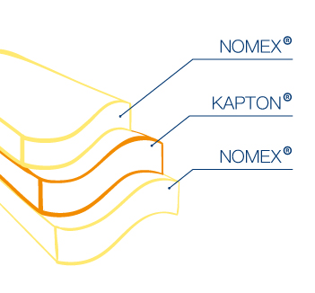 康维明DyTerm® K绝缘产品的材料由Nomex®芳纶纸与聚酰亚胺(Kapton®)结合而成。Nomex®层通过适合的粘剂与薄膜紧密粘合在一起。DyTerm®K层压产品提供了高性能的电机绝缘解决方案,尤其适用于工作温度高达200°C的旋转机械。薄膜的使用提升了层压材料的机械、物理和介电性能。 DyTerm® K用于旋转机械的槽隙封闭、绝缘以及卷饶头的相位分离。 DyTerm® K被用作变压器和静电设备中的夹层绝缘材料。康维明的DyTerm®层压产品分为两层式:Nomex®/Kapton®和三层式:Nomex®/Kapton®/Nomex®层压件。在两种层数的产品中,Nomex®和Kapton®的厚度均可选。